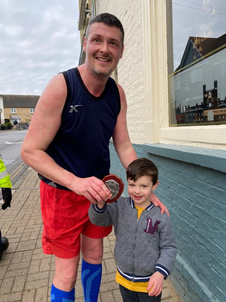 I managed to get round the route on a relatively bright Sunday morning, securing a trophy as both first place and last place finisher in my first ever marathon (see trophy being presented to me by Conor below).
